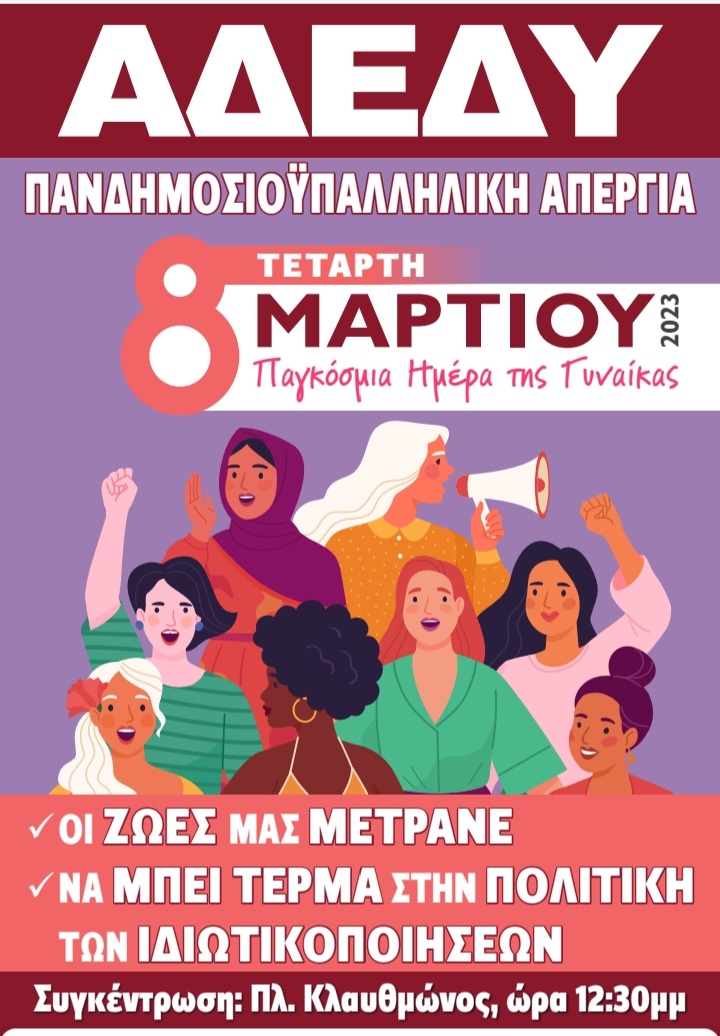 24ωρη απεργία Α.Δ.Ε.Δ.Υ. την Τετάρτη 8 Μαρτίου